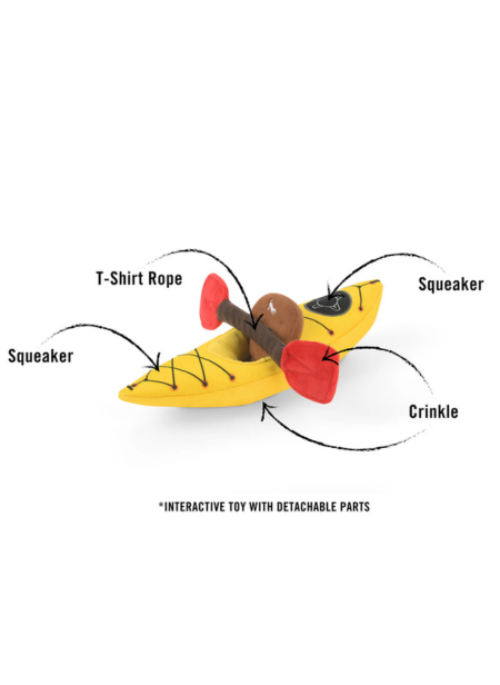 Paddle into a world of playtime with P.L.A.Y.’s Camp Corbin K9 Kayak toy! This whimsical watercraft replica features crinkles and squeakers, and for added fun, a detachable paddle comes equipped with a t-shirt rope. This interactive toy promises hours of fun for your furry adventurer!