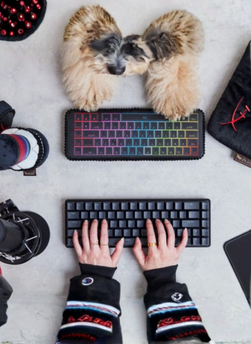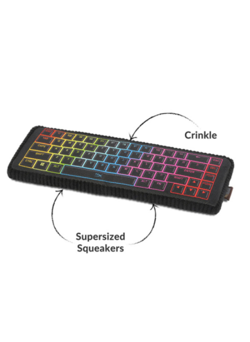 Game alongside your dog IRL with an Alloy Keybark Gaming Keyboard toy, modeled after the HyperX Alloy keyboards and constructed with a supersized squeaker and crinkles.