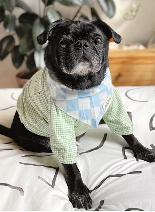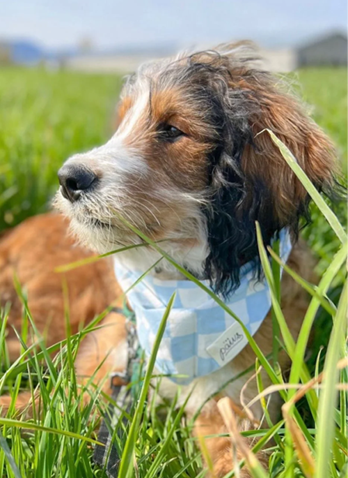 Tailor cut, double-sided dog bandana - sized & ready to tie on.