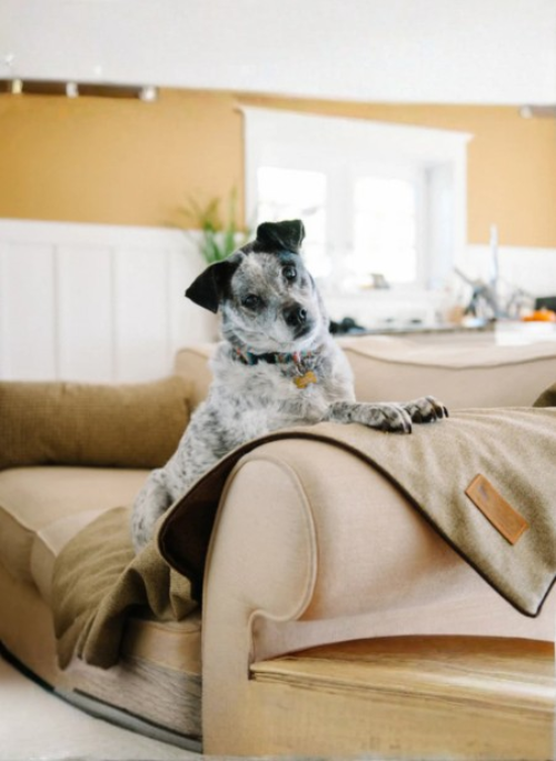 P.L.A.Y.'s Luxe Throw saves your couch from unsightly dog hair, boogers, and stains! Made of heavy weight fabric that’s double-sided and water-resistant, it drapes beautifully across you and your dog’s favorite lounging pad.