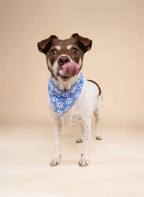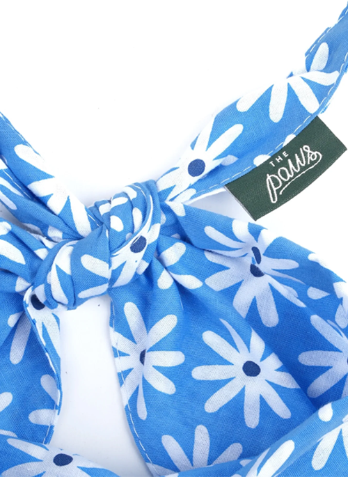 Lyla Flower Dog Bandana - White Flowers on Blue Cotton