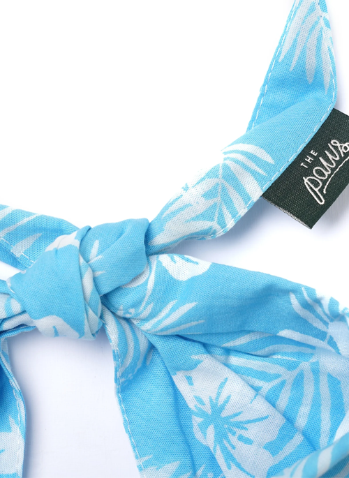 Malu - classic, tropical wear from The Paws. Hibiscus flowers in blue.