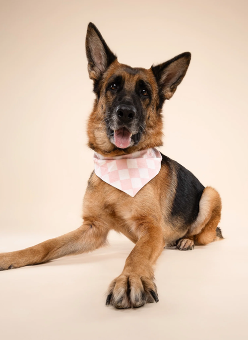 Tailor cut, double-sided dog bandana - sized & ready to tie on.