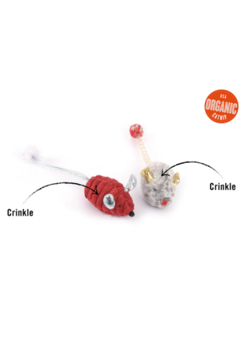 Get your cat into the holiday spirit with P.L.A.Y.'s Feline Frenzy Twice As Mice, a festive pair of mice toys that are ready to spread cheer. These merry companions feature crinkles and a fun crunchy tails, ensuring your feline friend stays entertained throughout the clawliday season.