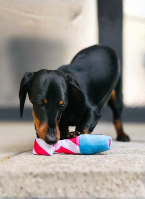 Amp up the celebration with P.L.A.Y.'s Party Time Mini Raise the Woof Party Horn toy! Designed for tiny pups, this extra small toy includes a squeaker at the top for extra excitement and a detachable horn that rolls out just like the real thing. It's the perfect mini accessory to raise the woof at every party!