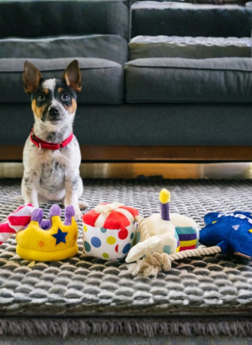 Make every celebration unforgettable with P.L.A.Y.'s Mini Party Time Plush Toy Collection! Designed specifically for tiny and small dogs, this extra small set brings the fun with festive balloons, party horns, and regal crowns. Let your little ones enjoy their mini cake that never goes bad while they unwrap their presents. With this delightful toy collection, your fur babies will feel extra special and never want the party to end!