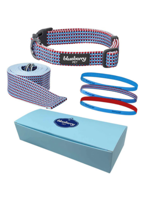 - 1 Stylish Dog Collar: designed for comfort and durability, featuring a striking red, blue, and white braided pattern that keeps your furry friend looking fashionable on every walk
