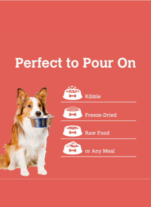 - Hydrated into your pet’s bowl: fitting any type of food—kibble, raw, freeze-dried, and more