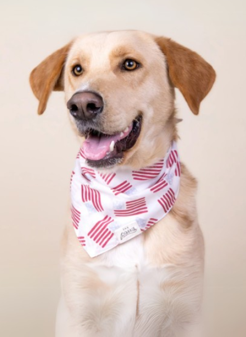 Tailor cut, double-sided dog bandana - sized & ready to tie on.