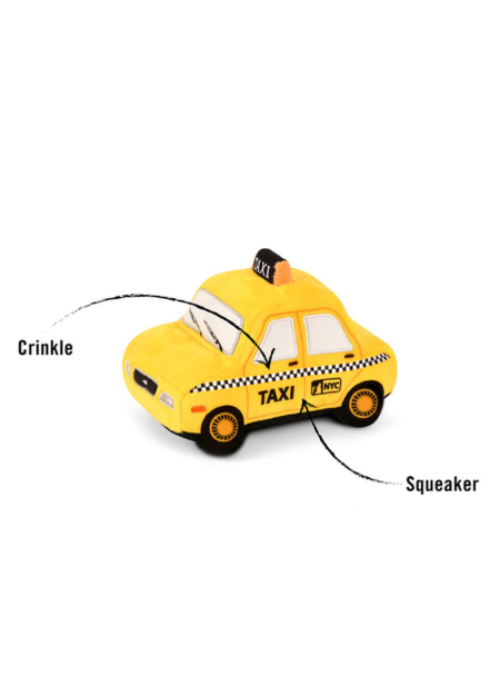 Hail a cab to fun with P.L.A.Y.'s Canine Commute New Yap City Taxi toy! Inspired by the iconic yellow taxis of New York, this plush dog toy is ready to take playtime for a ride with a squeaker and crinkly texture for extra excitement. Whether your pup loves a game of fetch or prefers backseat snuggles, this taxi is always on duty for playtime adventures!