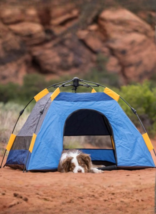 Mesh sides provide ample ventilation and visibility, while providing shelter from the elements including a water-resistant roof to keep your dog dry. This cozy portable pet hideaway tent is the perfect accessory for heading into the wilderness with man’s best friend.