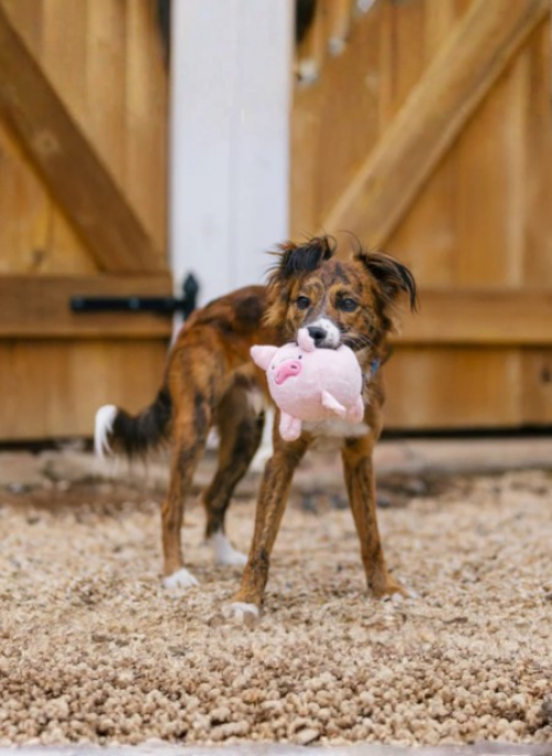 P.L.A.Y.’s Barnyard Buddies Paul the Pig toy is bringing farm bliss straight to your pup! This plush pal is perfect for cuddles, but when it’s time for play, the hidden spiky squeaker ball inside makes for a squealy good time when your pup plays a little too ‘ruff’! Oink, oink, let’s play!