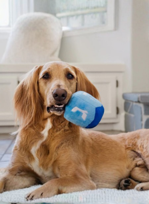 Make this holiday one to remember with play and some dreidel fun! P.L.A.Y.’s Paw-nukkah Doggy Dreidel toy is a captivating addition to the holiday festivities. With a classic dreidel shape and a hidden rope, your pup will surely stay entertained. So, add some tail chasing fun this season with this squeaking and durable plush!