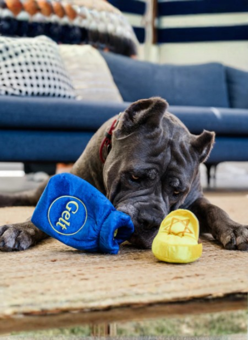 Get ready for deliciousness wrapped in captivating gold by allowing your pup to indulge in the excitement of P.L.A.Y.’s Paw-nukkah Gelt-y Treats this season! Why keep the fun to yourself when you can share the joy with these squeaking gelts and a crinkling pouch? This toy features a find-n-seek element to keep your pup indulged. There’s enough Gelt for both you and your pup to enjoy this season!