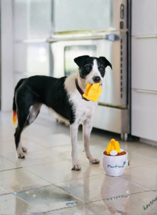 Treat your pup to a playful serving of the Earth Rated x P.L.A.Y. Pooch-tine toy! Complete with removable fries, crinkle and two squeakers, this toy serves up interactive fun with a cheeky nod to the Canadian classic.