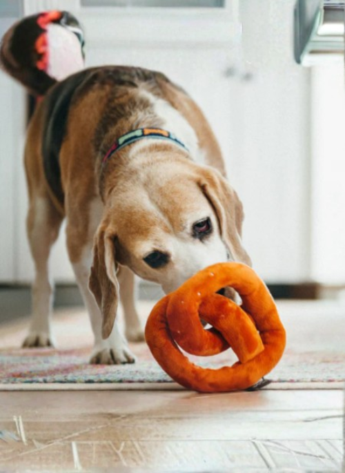 Treat your furry friend to the P.L.A.Y.’s Poochie Pretzel toy! With its realistic twisty shape and two tube squeakers, this pretzel is the perfect blend of chewy fun and crunchy sounds. Whether it’s a solo play session or a fun game of fetch, this pretzel is sure to keep your pup entertained and satisfied. Let the snack attack begin and get ready for some seriously twisted fun!