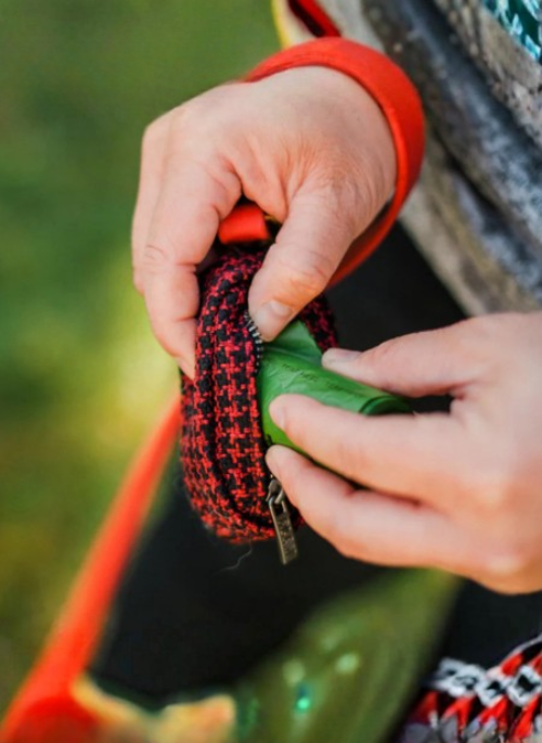 When you clip P.L.A.Y.’s stylish Proper Pup dog poop bag holder onto your dog’s leash or belt loop, you’ll never be caught empty-handed when you need to clean up after your furry friend. This durable, lightweight dog bag dispenser is made from upcycled materials, features a zippered pouch compartment that securely holds up to 15 poop bags at a time and makes reloading a breeze! Our subtle cloth dog bag carrier comes pre-filled with a roll of Earth Rated dog bags and can clip on to any leash.