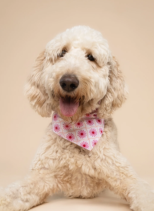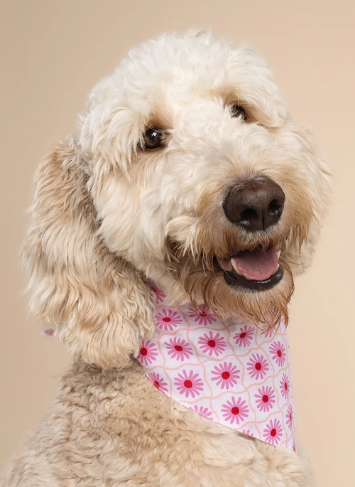 Poppy Dog Bandana - Pink Flower on White Cotton