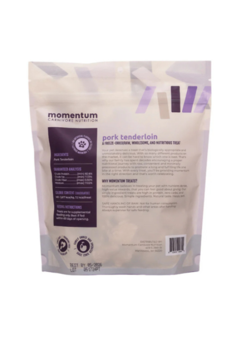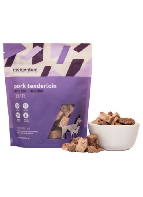 Indulge your pet with the delicious and nutritious Momentum Carnivore Nutrition Freeze-Dried Pork Tenderloin Treats. Made from 100% pure pork tenderloin, these treats offer a high-protein snack that supports your dog or cat’s overall health and well-being.