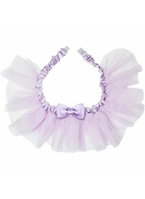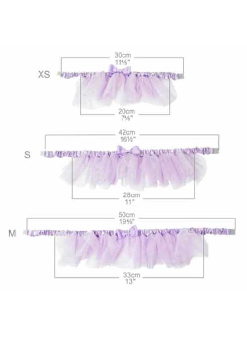 Designed for comfort and security, the collar features an elastic webbing fit with a breakaway clasp to keep your pet safe while moving freely. A beautiful layer of meshes cascades around the neck, accented with iridescent spots and textured tulle that catch the light in the most enchanting way.