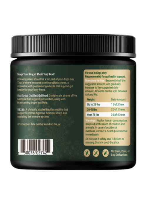 - Each chew contains a carefully selected combination of six clinically studied probiotic strains, supporting digestion, bloating relief, gut lining integrity, immune defense, and nutrient absorption