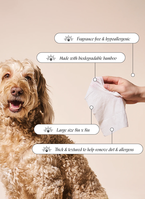 - Wipe your dog's coat and paws to remove outdoor allergens, post-potty breaks to clean and reduce irritation to sensitive areas, and any other time a quick refresh is needed.