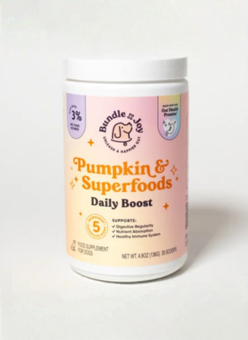 Make your pup’s daily ritual feel as nourishing as it is delicious with our Pumpkin & Superfoods Daily Boost Powder. Packed with fiber-rich pumpkin and a blend of nutrient-dense superfoods, this plant-based formula supports gut health, digestion, and overall wellness while adding hydration when mixed with water.