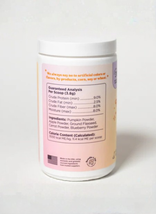 Fiber from pumpkin helps promote healthy digestion and regularity, making mealtime a moment of true gut-loving nourishment. Clean, simple, and vegan, this powder is perfect for dogs who thrive on a plant-forward boost.