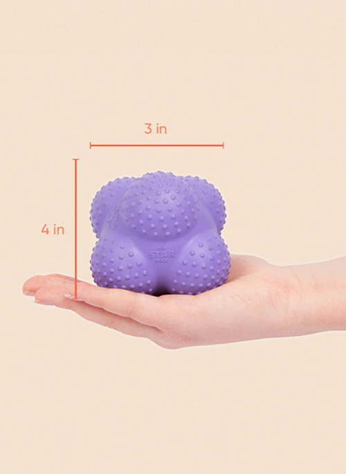Introducing the Yomp Pup Star MAX. Made from all-natural rubber, this uniquely shaped star is designed to bounce in wild patterns, so your dog will have a howl of a good time chasing it down. It is also textured with small nubbins to assist with cleaning teeth and massaging gums during chew time! You can’t go wrong with a happy pup.