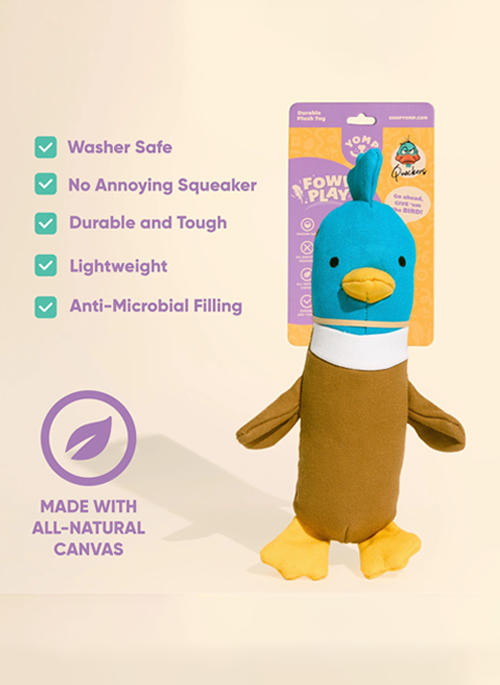 We call them plushies, but don't be fooled - these birds are tough! Not tough on the planet though. Made from high-quality, all-natural canvas and crinkle paper, the Fowl Play line of plush toys will keep your plush-hound happy while minimizing environmental waste. Yomp is committed to sourcing renewable resources for all it's products, and making sure each item is further recyclable and reusable. Love the earth AND your dog.