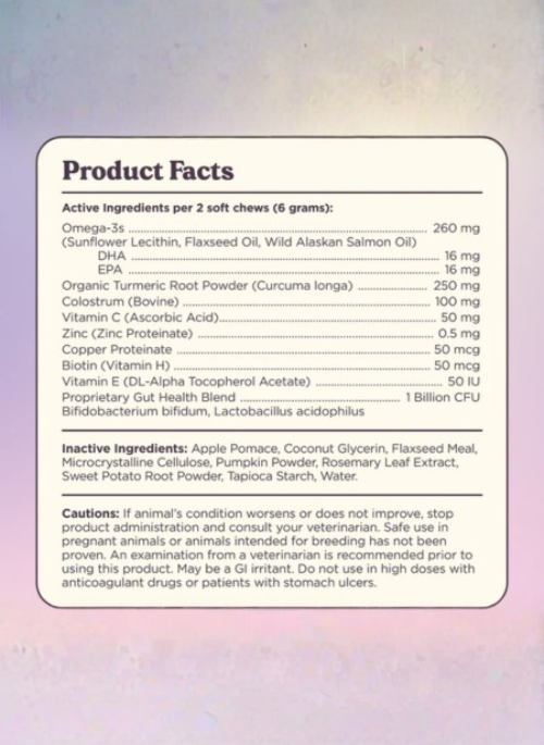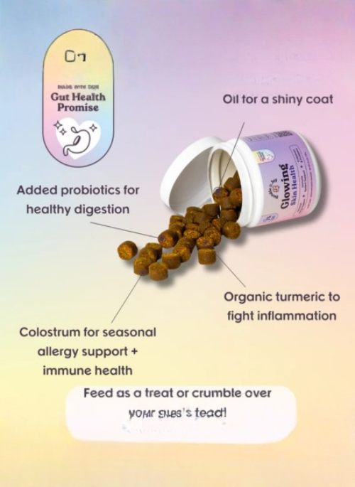 - Collagen - supports healthy skin and joints + reduces your pup's aches and pains