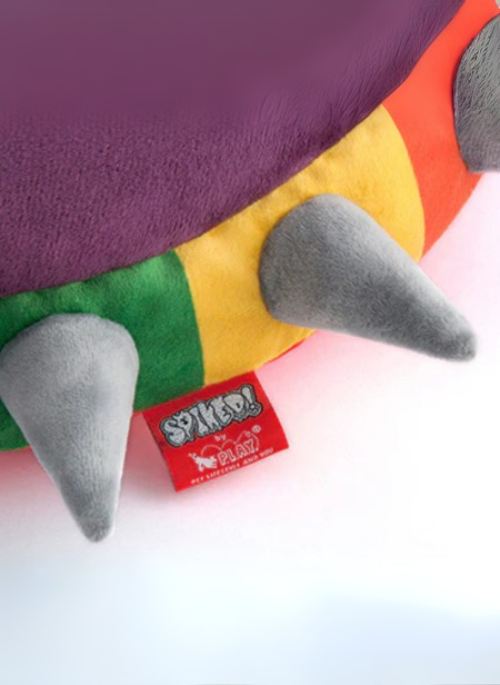 Dreams do come true! Your furry friend can rest easy knowing they are curled up in a tiny pet bed that supports the idea of loving all pets equally no matter their size, age or appearance. This colorful pet bed is filled with P.L.A.Y.’s certified eco-friendly PlanetFill polyfiber and adorned with plush spikes inspired by Biff the Dog, a character-based brand with a PAWS-itively lovable vibe. Now your pet can snuggle up in support of universal love while lounging on their plush pet bed including a vibrant and surprising rainbow motif on reverse side.