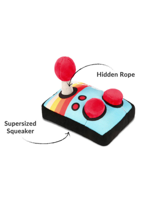 Take your pup on a nostalgic gaming adventure with P.L.A.Y.'s 80s Classics Ready Player Fun toy! This 80s-inspired video game console is a blast from the past, boasting a super-sized squeaker in the body for maximum excitement and a hidden rope in the toggle for interactive play. Watch your furry friend level up their playtime, where every session is pixelated fun!