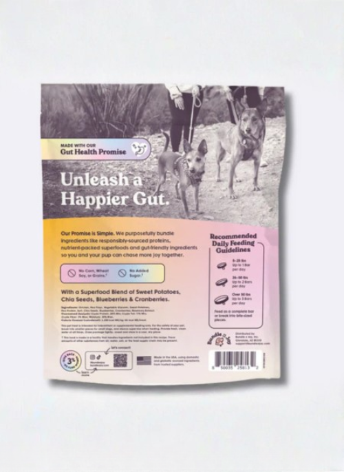 Real Chicken Jerky Treats with nutrient-dense superfoods are the ultimate treat for your furry friend. Made with real chicken as the first ingredient, these grain-free training treats are perfect for small, medium, and large breed dogs. The inclusion of plant-based superfoods such as sweet potatoes, chia seeds, blueberries, and cranberries make these treats a healthy choice. Plus, by supporting Bundle x Joy, you're also contributing to a female-founded company that gives back to women entrepreneurs and local communities through a 3% give-back program.