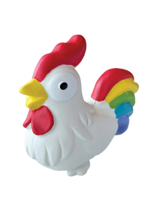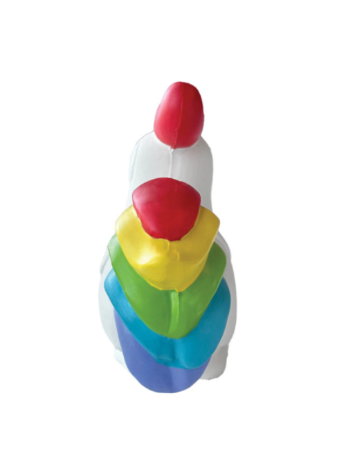Our One Love Collection is a celebration of love! Our Rooster toy is hand painted with vibrant rainbow colors. As always, our latex toys are 100% non-toxic with a built-in squeaker. They are lightly stuffed with plush to add to the chewing experience.