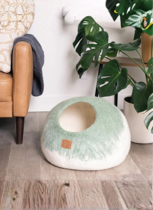 Give your cat the ultimate retreat with the Round Style Cat Cave Bed where luxury, comfort, and design meet. Handcrafted from high-quality organic felted Merino wool, this sculptural cave offers a cozy hideaway for cats of all sizes, while doubling as a piece that elevates your home decor. Inspired by nature and thoughtfully designed for both visual impact and you cat's comfort, the Burst Design Cave invites your pet into a warm, protective space that is both relaxing and delightful. This is truly the perfect round cat house and cave