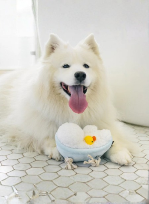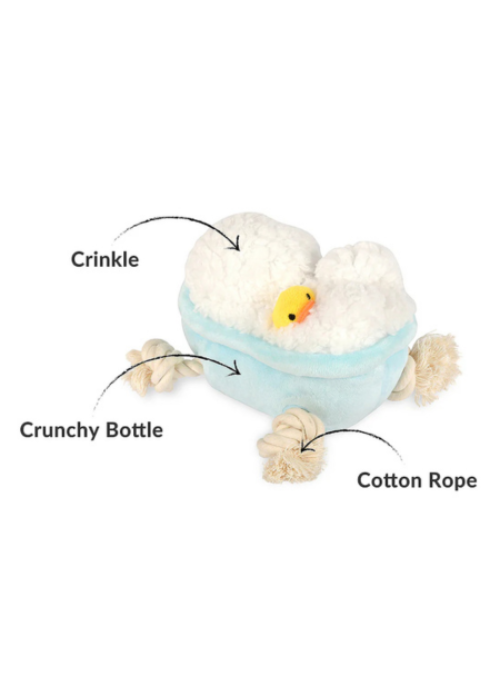 Love it or hate it, bathtime is essential! Transform this essential routine into a playful experience with P.L.A.Y.’s Splish Splash Rub-a-dub-Tub. This toy is perfect for a post-bath tug-of-war game featuring delightful crinkles and a satisfying crunchy bottle. It’s so enticing that even Bubbles the Duck couldn’t resist sneaking in!
