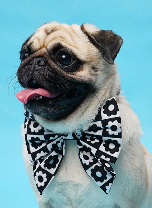 Tailored tails dropping from The Paws classic bow tie shape. Two elastic loops strongly sewn in the back.