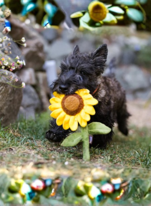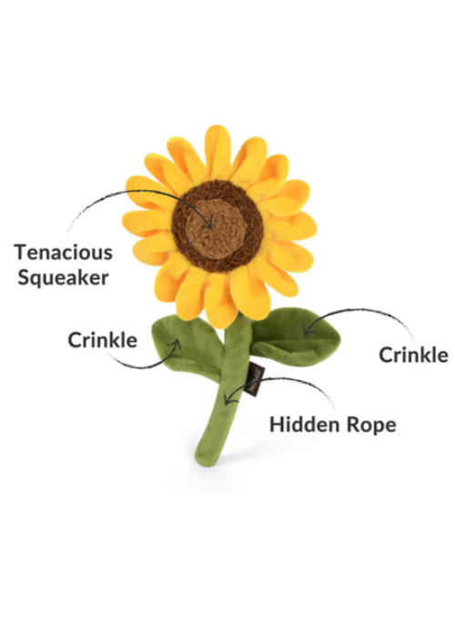 Find your favorite plush toy once and floral with this P.L.A.Y.’s Blooming Buddies Sassy Sunflower toy! Hidden inside is a rope that your canine will surely love to tug, and a squeaker designed to entice. Bring a burst of sunshine into your home and brighten your pup’s day with the vibrance of this delightful floral plush!