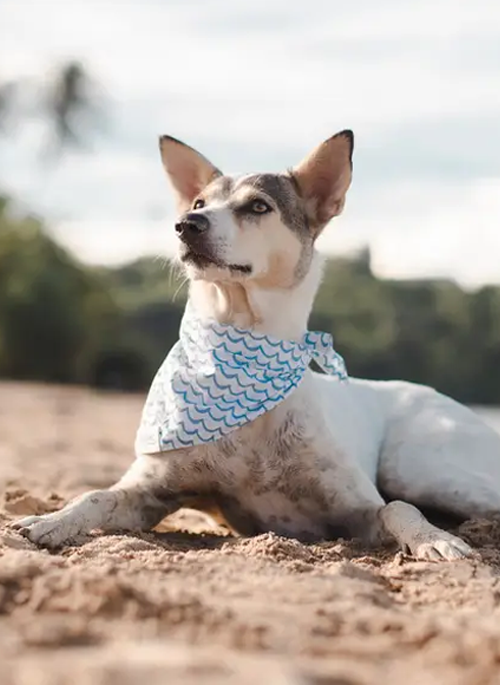 Tailor cut, double-sided dog bandana - sized & ready to tie on.