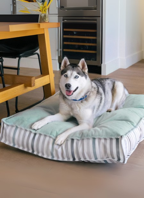 Treat your dog to a bed that never goes out of style! Our Seaside Boxy Bed features a modern striped print and reversible bed cover, giving pet parents the versatility to mix and match in any home décor.