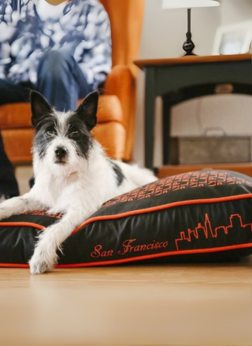 - SFyline dog bed cover artwork created exclusively for P.L.A.Y. by SF local artist and dog-lover David Collins