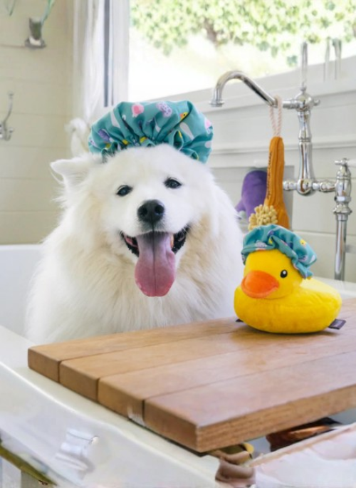 Elevate your pup’s playtime with style using P.L.A.Y.'s Splish Splash Shower Quack—an adorable wearable cap and toy all in one! This charming cap isn’t just a fashion statement; it's a dynamic toy filled with crinkles, a squeaker and a bungee, guaranteeing an extra dose of excitement during both playtime and bathtime. Make every moment a playful and stylish adventure for your furry friend!