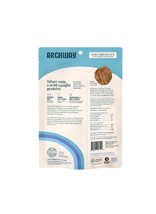 Introducing Arch Pet Food's Silver Carp (Copi) cat treat – a unique delicacy made from an invasive fish species known as Asian carp. These hypoallergenic cat treats are meticulously prepared to offer your cat a delicious, single-ingredient dehydrated snack. Copi, also recognized as Asian or silver carp, boasts a plethora of nutrients and is notably free from the common chemicals and metals often found in bottom-feeding fish.