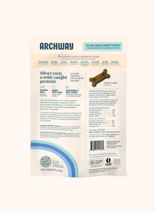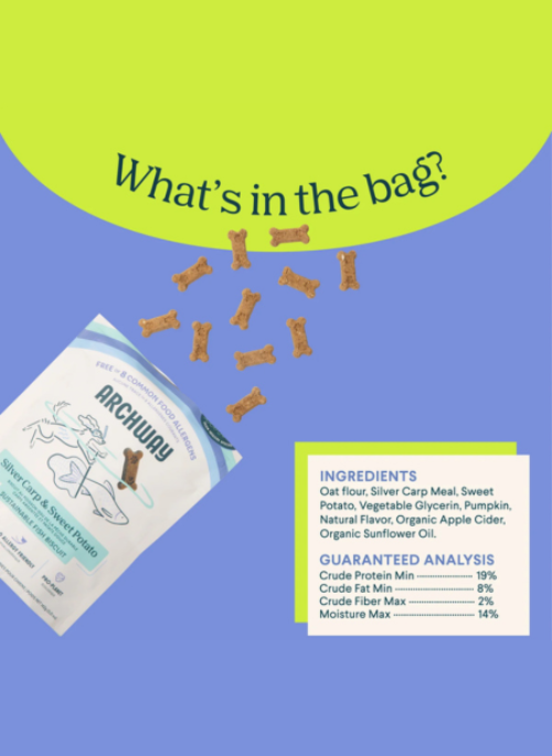 A biscuit treat but make it deliciously nutritious! Our wild-caught silver carp is a tasty lean source of protein, full of omega fatty acids too. Plus, this top-feeding fish is free of common chemicals and metals often found in other fish. Sweet potatoes pack in extra nutrients including fiber, vitamin C, and potassium.