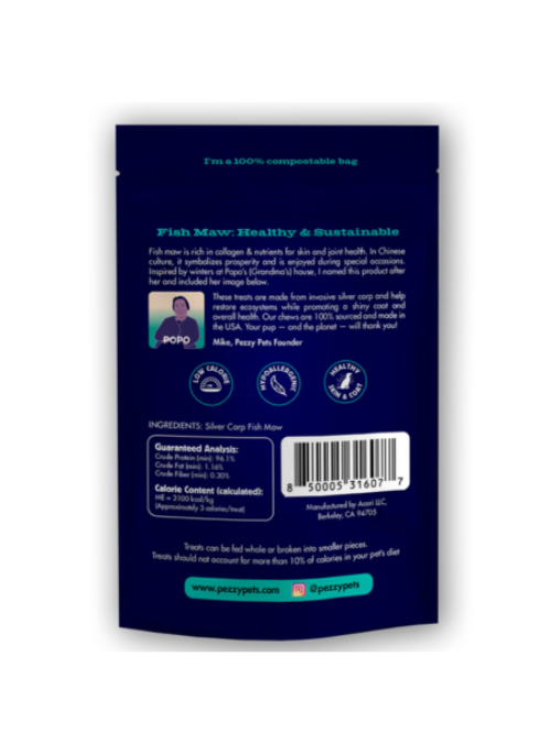 These crunchy fish maw chews are crafted from invasive silver carp from Midwest waterways. These destructive carp threaten native fish populations across America's rivers and lakes. Each satisfying chew helps protect our local ecosystems while providing your pet with a nutritional powerhouse.