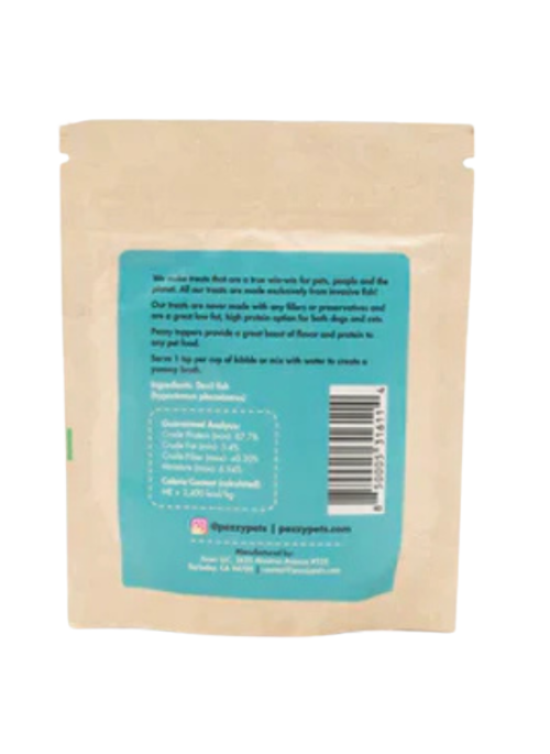 This fish flour pet food topper is made from 100% wild-caught Mexican devil fish, an invasive species across Mexico and numerous countries worldwide, overwhelming native fish populations. Each sprinkle of this nutritious topper helps restore natural ecosystems while delighting your pup's or kitty's taste buds!