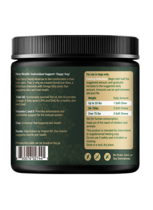 - Over 75 lbs: 3 soft chews Daily dosage ensures your dog gets the optimal amount of nutrients for coat health and skin support without any guesswork