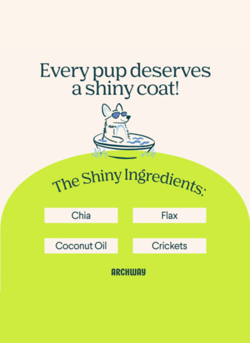 Developed specifically for skin and coat health! From all the nutrients found naturally in crickets PLUS added flaxseed, chia seeds, and coconut oil, your pup's coat will be so shiny, you'll need to grab your sunglasses!