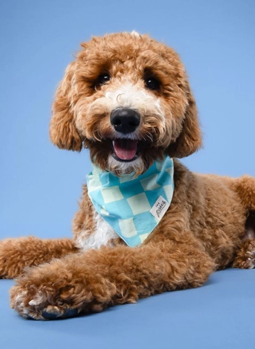 Tailor cut, double-sided dog bandana - sized & ready to tie on.
